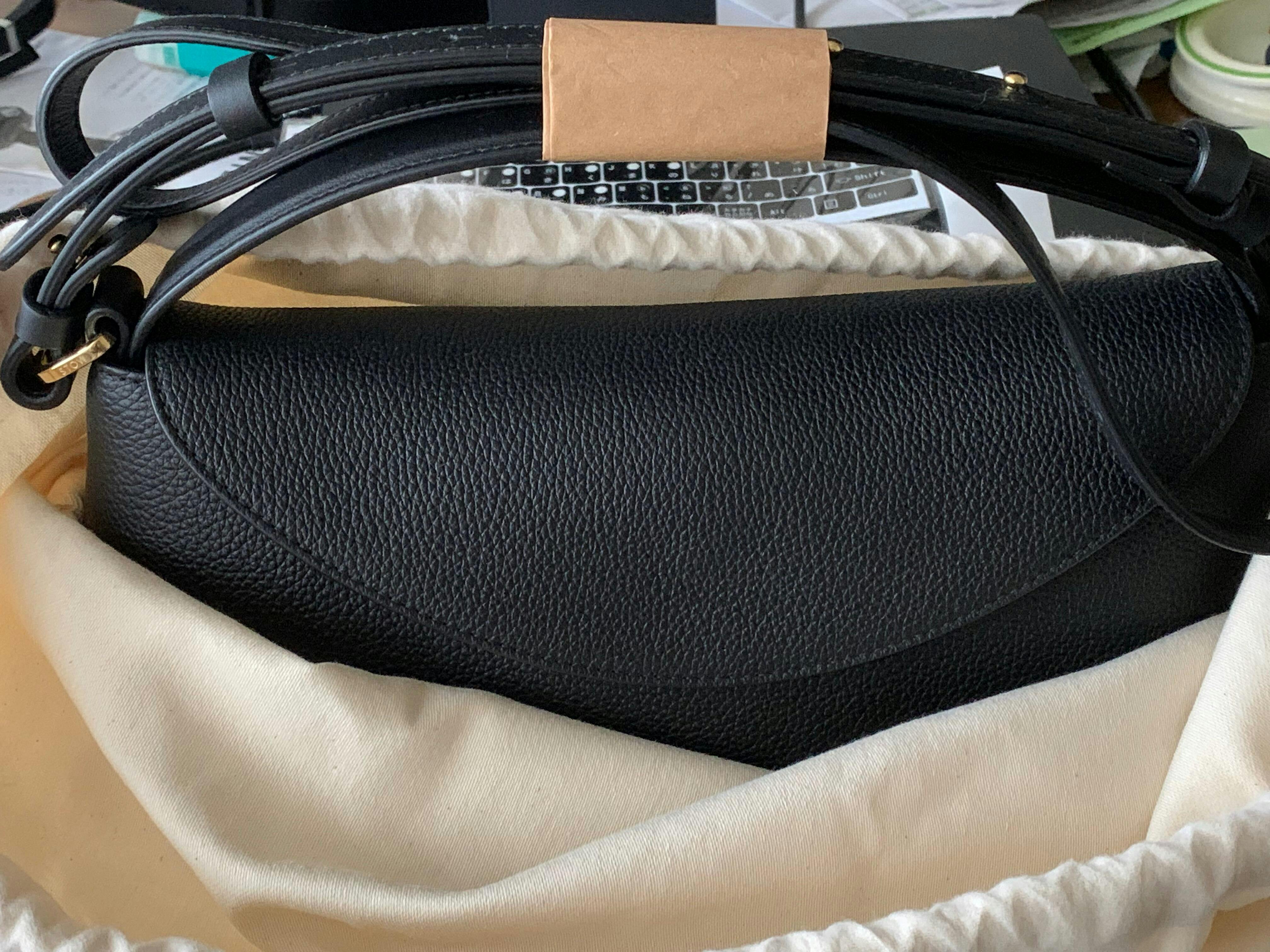 The East West Curve Bag in Black leather blends bold structure with soft form. Its smooth and pebbled exterior is crafted from LWG-certified Spanish leather, while the bonded suede lining and gold-coated hardware add elevated detail. Magnetic closure ensures a clean profile, and the removable strap offers versatility for crossbody or shoulder styling. Fitted with an internal card holder pocket. Handmade in our Ubrique factory, it’s a modern classic rooted in sustainable craftsmanship.