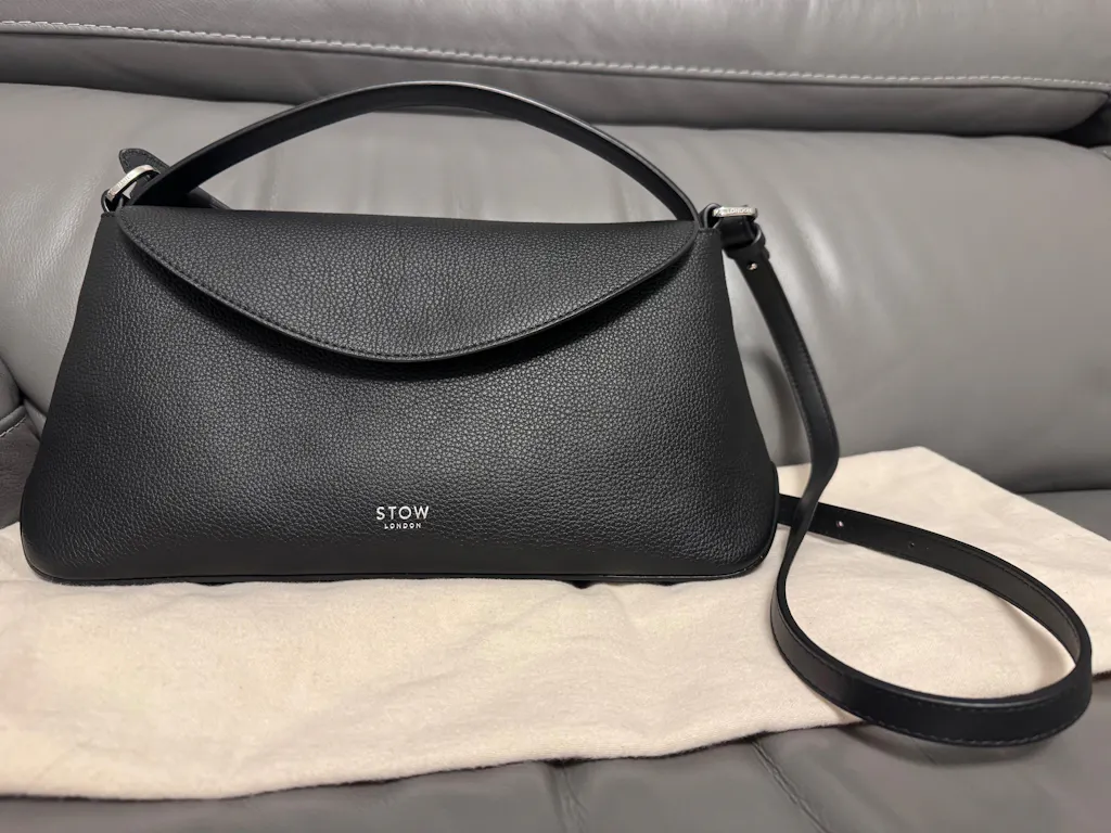 The East West Curve Bag in Black leather is crafted from LWG-certified Spanish leather with smooth and pebbled textures. Its sculptural silhouette is elevated by bespoke stainless steel hardware in a premium raw polished silver finish. Inside, a bonded suede lining and discreet internal card holder pocket add refined functionality. Finished with a removable strap for effortless shoulder or crossbody wear, with a clean magnetic closure to preserve the bag's sleek profile. This modern essential is handmade in our Ubrique factory with sustainability and longevity in mind.