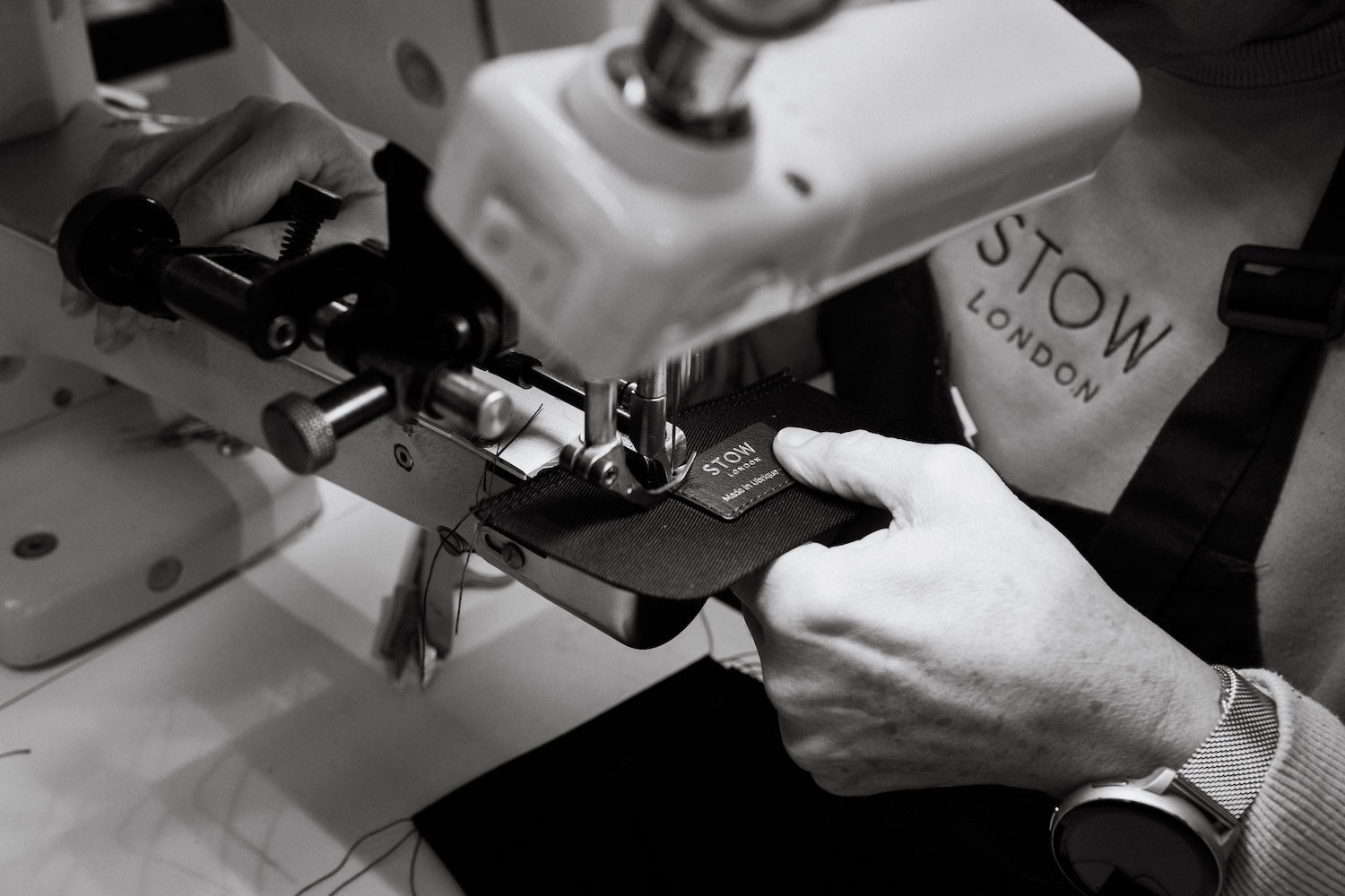 Embossing. Using a fine gold or silver foil to add the STOW logo and our "Made in Ubrique" seal of quality to the bags. Some bags have as many as four different embosses. This is also how we add personalised initials. When embossing is done without foil, this is called "blind embossing".